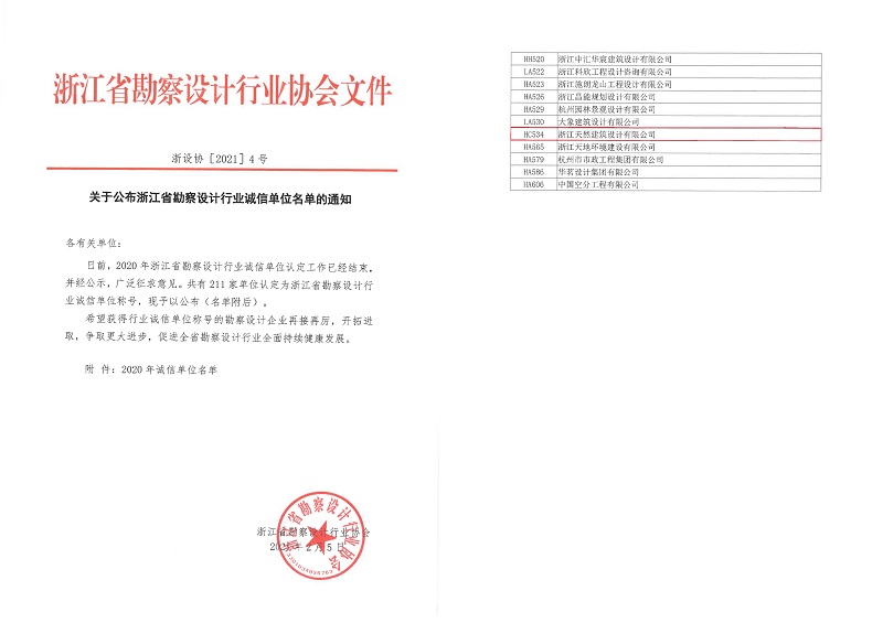 (2020)年度浙江省勘察設(shè)計(jì)行業(yè)誠(chéng)...