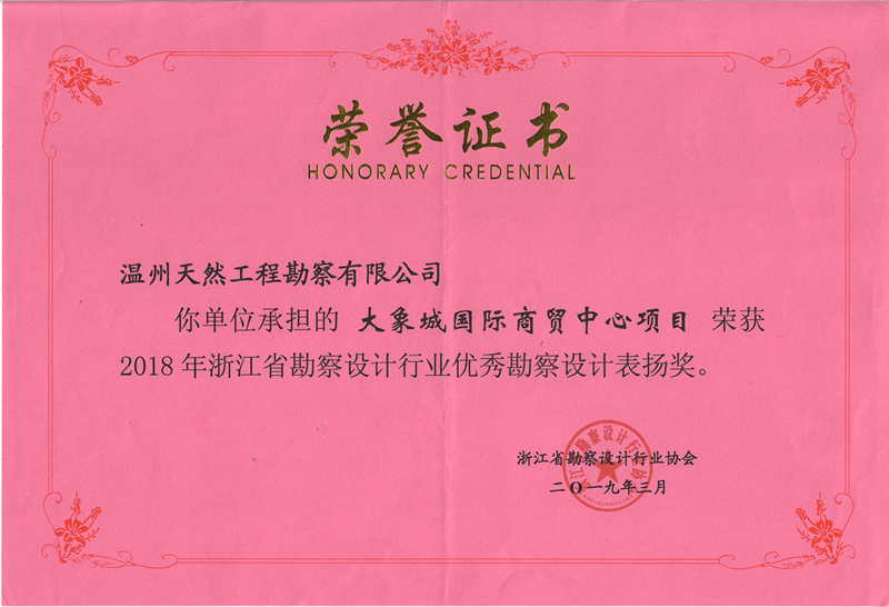 (2019)浙江省優(yōu)秀勘察設(shè)計(jì)表?yè)P(yáng)獎(jiǎng)...