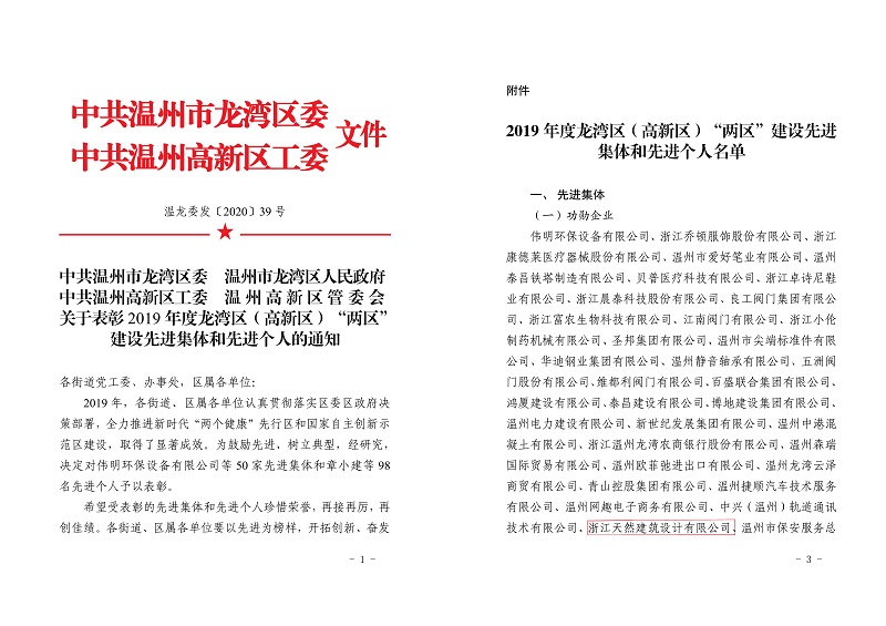 (2019)年度龍灣區(qū)功勛企業(yè)
